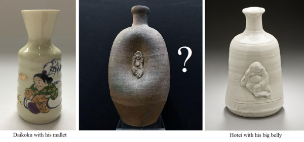 Well thank you very much Thomas, that image is spot on. Having a second look at the spout of most Saké bottles and the other tsuba image I am now inclined to think the spout is supposed to represent a chipped or cracked top - it may well represent getting a bit merry and breaking the bottle? [the hazards of drink?] Yagu or not is really not that important to me I just love the odd shape. -