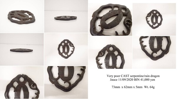 Just an update on these Serpentine/Rain Dragon designs, I have found evidence of at least one rather obvious Iron casting of the design - there is no evident Izarae [cleaning a casting] Even for a casting there should have been some sort of 'quality control' - The asking price is way off the scale. I will leave it up to the viewer to find the faults - many.