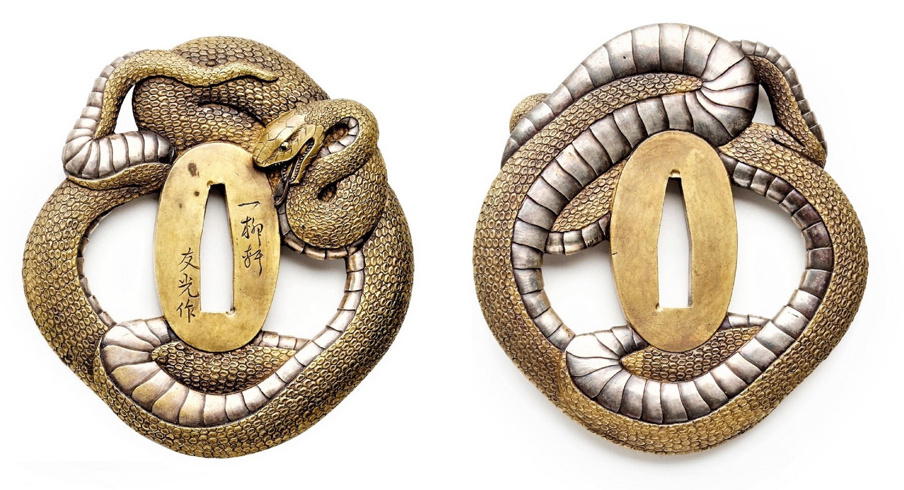 https://www.jauce.com/auction/1186608762 why pay for the cheap one when people can get ripped off for even more money! I have seen these selling in the past for $800 USD - Now that is organised crime! What past!! Still selling at over the top prices on ebay https://www.ebay.com/itm/355132266401 US $1,108.54 - you do get a box! Recent sale https://buyee.jp/item/jdirectitems/auction/r1000252521?lang=en = $308 USD 1 bidder, poor sod! https://www.thierrydemaigret.com/lot/22009/4944605-tsuba-en-fer-a-fond-martele-de-kanji-a-decor-en-haut-relief? = $1237.05 USD, an even poorer sod! Where do I send my condolences? It doesn't seem to change peoples buying habits, they don't do basic research and still believe the seller's every word. How hard is it today to do an image search?