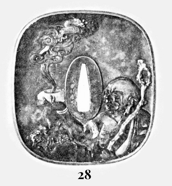 A tsuba converted into a Netsuke by plugging the nakago-ana. https://www.ebay.com/itm/166471369863 A fuchi similarly converted. https://www.ebay.com/itm/166469540444 Image from a post by GRC November 22, 2021 These examples may not be the same as David's. Nice mystery with the three different metal fillings. Another from the Spencer Museum of Art, University of Kansas. https://spencerartap...arch/works/1928.2356