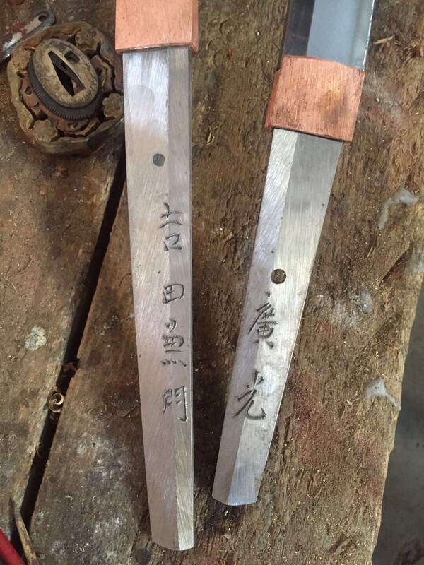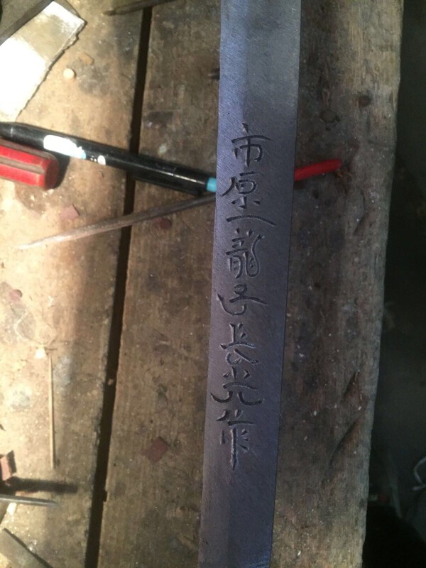 They use real gunto fitting, relic the tang after carving the Gei Mei. Sometimes they carving the Mei on the real Japanese Mu Mei blade, sometimes use the Long Quan blade.