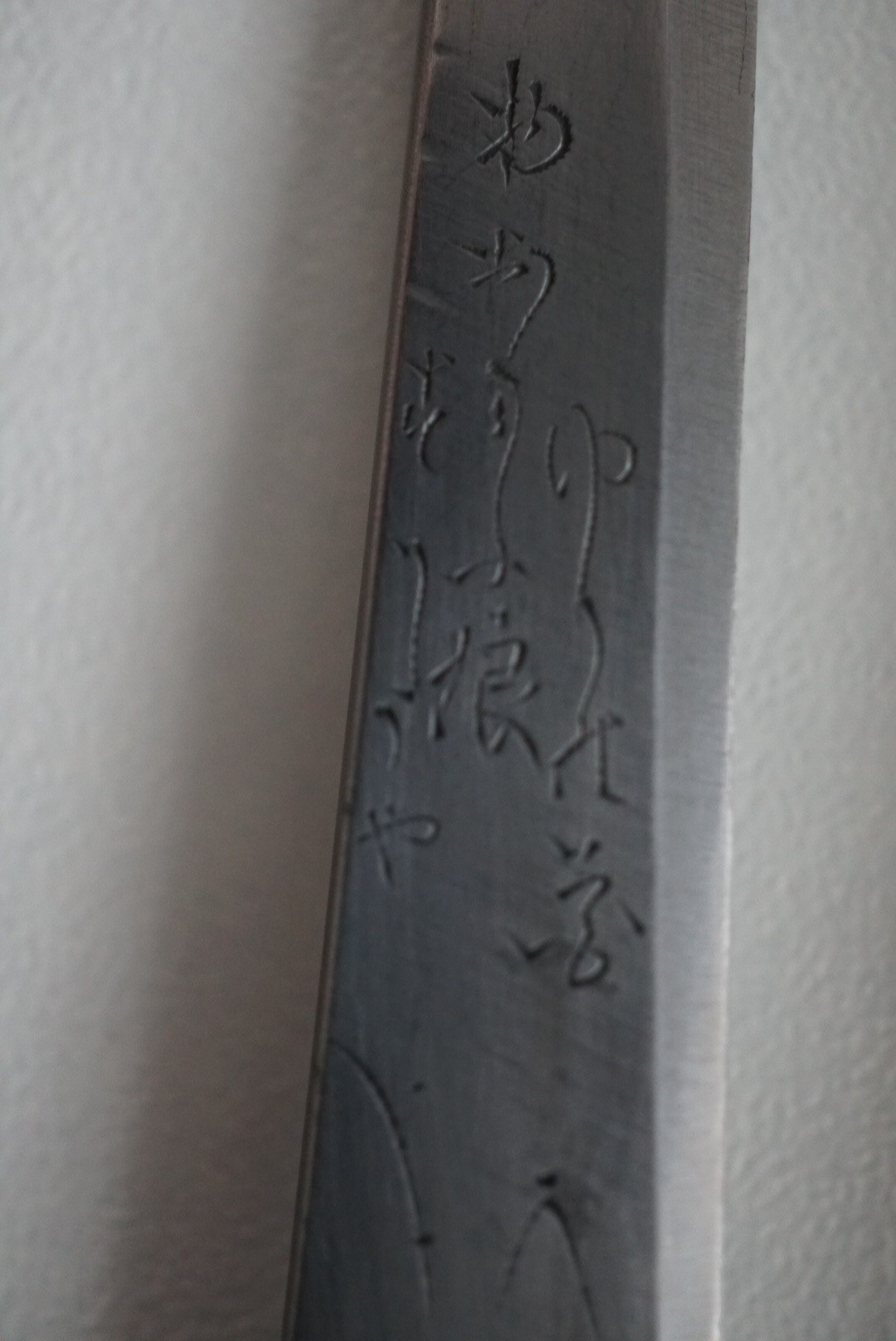 Hi Steve, At first, I had the same feeling about the kogatana and the saya. I have mixed feelings about the saya. It is obviously strange and it has the vibe of a tourist piece but on the other hand the fit is perfect. Why use a good kogatana to create such a saya. The poem intrigued me as well but I can't read even a part of it. Thanks for your reply. Regards, Ed