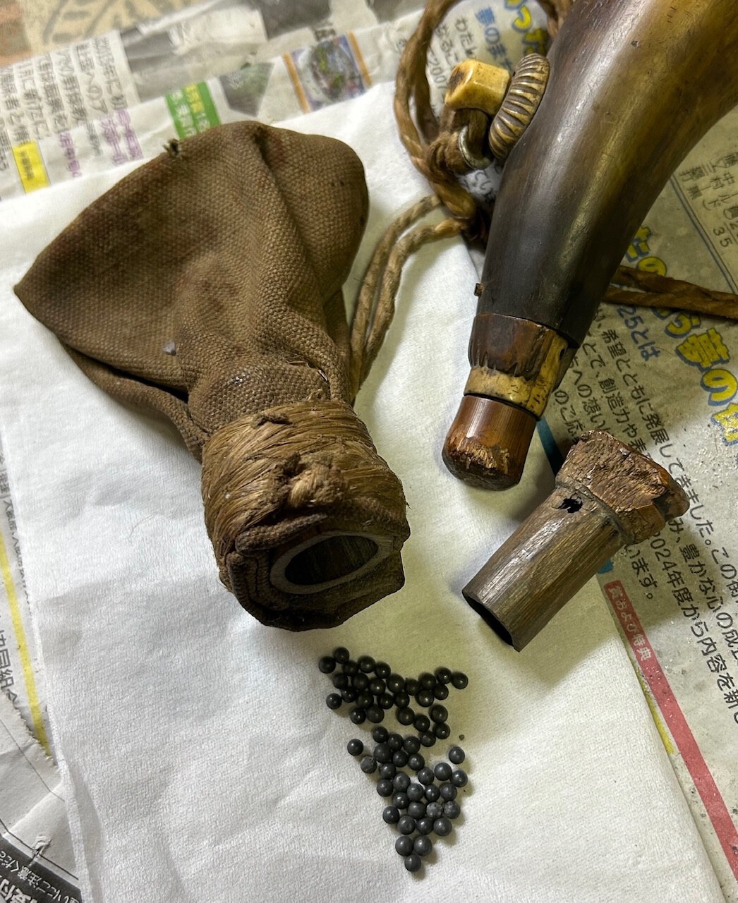 John, shot would have been used in the same way for small game, yes. Of course they did not have cartridges as we know them, so, as in the early days of the Wild West, a powder charge would first be poured down the barrel, followed by a load of lead pellets, maybe in some paper wadding to keep the load compact. Trawling some antiques fairs etc. will gradually build your collection. Step by step one gets to Rome! PS I you can get hold of the *Ogawa Collection, you will see many interesting examples of the kind of thing we look for, accessories of the ashigaru and castle lord. * and -