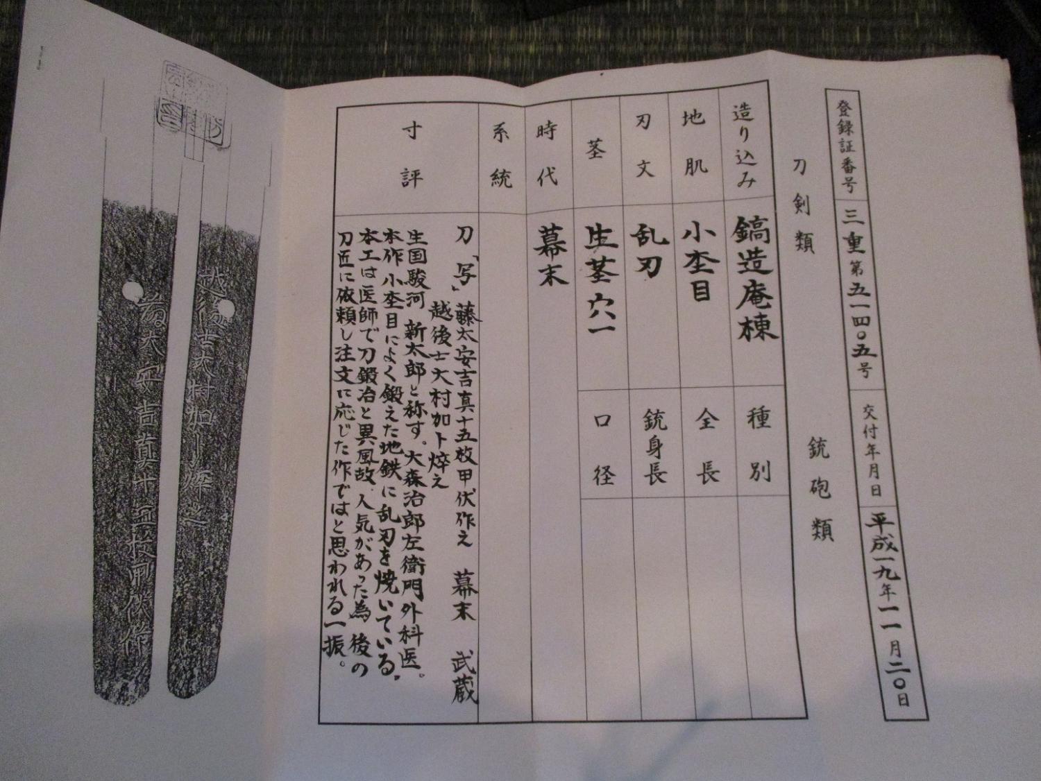 9. Hi, this is my first post to this forum and I am glad that forums like these exist as they help people out greatly in their search for answers to the many questions that people run into during their journey to find the right Nihonto. I was in Japan earlier this year and as part of that trip, I kept my eye open for a Katana that spoke to me. I game along a particular Katana in Kyoto that I loved but unfortunately the people that worked at the shop at the time did not spoke any English so I wrote down the details so I could contact them later which I did upon my return. I am still contemplating buying the sword but it comes at a significant price which I am willing to pay if it wasn't for some concerns that I have. The sword does not come with origami by one of the major Japanese sword study associations (NBTHK or NTHK). Instead it has papers from Juho-Token-Kenkyukai. I found more information on these papers from http://www.militaria.co.za/nmb/topic/659-kantei-paper/ I was hoping that someone could help me translating these papers. Thanks in advance!