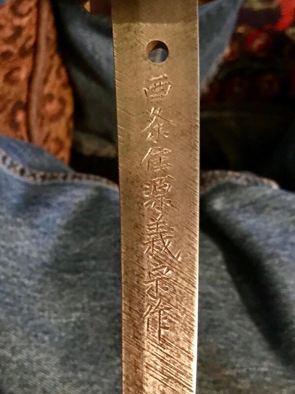 Over Christmas I ran across a Type 98 sword and was only able to take quick pictures of the tang. On the date side I was able to find, (sho-wa-ichi-roku-nen-go-gatsu-hi), which I translate/calculate. as "a day in May 1941AD". On the other side I was able to find only "???-?jou-ju-man-tetsu-mune-saku". The missing characters and the meaning totally defeat me. Please help. The script on the handle, I have no idea.