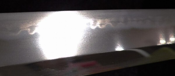 In agreement with the comments above about the sugata. The grand shape with deep sori and the blade's width, with little difference between moto-haba and saki-haba, would point towards a date going into and during mid-Kamakura. I do feel that the moto-haba was wider originally, looking at how the hamon begins to narrow from the mid blade downwards, and the weariness to the jitetsu in that area.