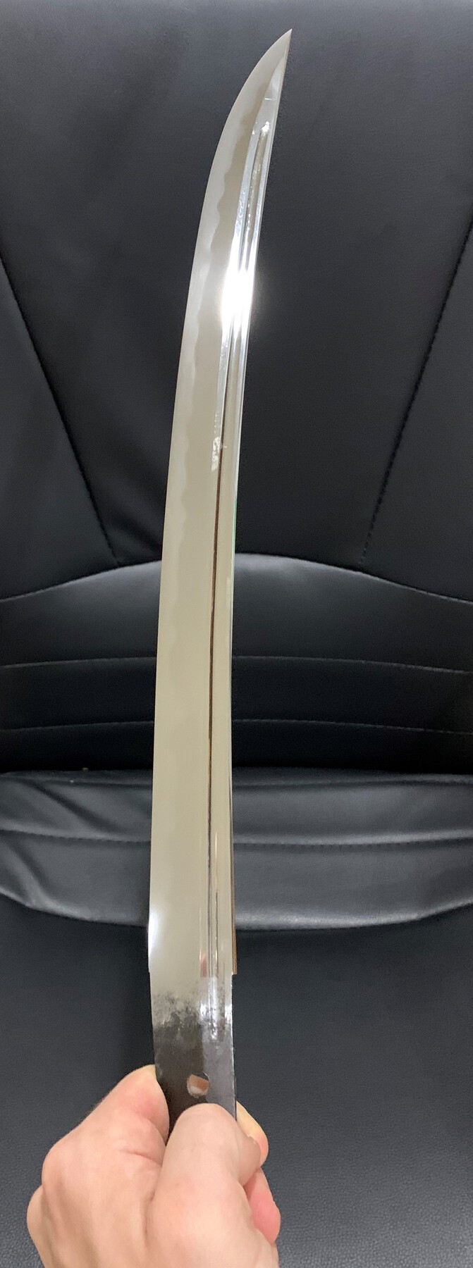 First off, I hope those of you at the Chicago show are having a great time on day 1. Hope to make it to one once I am back State-side. For those of us stuck at home, as promised the last in the series and it is for the Soshu crowd -- This sword is an osuriage wakizashi which appears to be a Nanbokucho-period naginata/nagamaki-naoshi. With ato-bori bo-hi and the kaeri looks intact to me. Although a commenter did think it was rather a shobu zukuri tanto or ko-wakazashi. It has itame jihada with nie arcing out of the hamon becoming chikei in the ji. The hamon is midare, with some gonome-midare. Like the Bizen in #2 I do plan to send this to NBTHK shinsa once global shipping is more reliable and will update the thread then. This was also featured on the forum for purchase so some of you may have seen glimpses of it before (hint hint to those looking for a first piece, some great deals here on the NMB with some patience ). Again credit to @Ray Singer for the better photos. to everyone for taking a look, I hope the series provided some examples of various smiths and traditions until we can all get out and view more swords comfortably again. Nagasa: 41.1cm moto-haba: 31mm 7mm thick at the shinogi The sword has two old attributions: an early 1962 green paper to Naoe Shizu and an old sayagaki from Honami Koson to Sa Kunihiro. (Those are lights reflected int he boshi along the edge...)