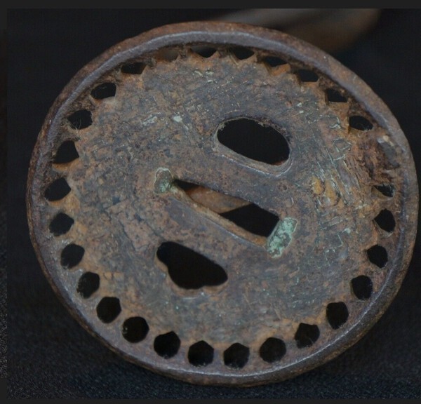 Well, I'm commenting after seeing the newer, slightly better pictures, and I realise who I am disagreeing with, regardless, I'm not convinced this is cast. I think this guard has been cleaned from a bad state, and subsequently coated (painted?) with something; hence, making it appear cast. The design is not the same front and back (although close), the nakago ana has been modified on the lower right hand corner (widened), and this is creating most of the visual issues of the seppa dai. I think it is also encroaching on the mei, not the mei encroaching on the ana. The tenzogan looks to not be part of the base material, and I suspect any non-coloured examples are from the coating being missed when they were all otherwise scraped back. This might account for the tenzogan deformations as noted elsewhere. The wave at the 1 to 2 o'clock position on the front, appears to be missing one of the tenzogan dots, leaving a hole. The mimi has decoration which if nothing else, shows signs of hand finished work... and back on the design.... I admit I have not seen every single cast example out there, but I've spent a lot of years modifying literally hundreds of modern dojo used swords with "authentic looking" Tsuba, and I've never come across this design before. Ive fitted many antique cast tsuba, as well as some higher end more modern handmade ones. CAS Hanwei did bring out some Tsuba 10-20 years ago with legitimate tenzogan, but most were dragon themed, and none were signed in modern, or legitimate edo smith, mei. It is always hard appraising through pictures, and being where I am, it's all I can do.... the nearest Tsuba vendor or show, is literally 3000km away