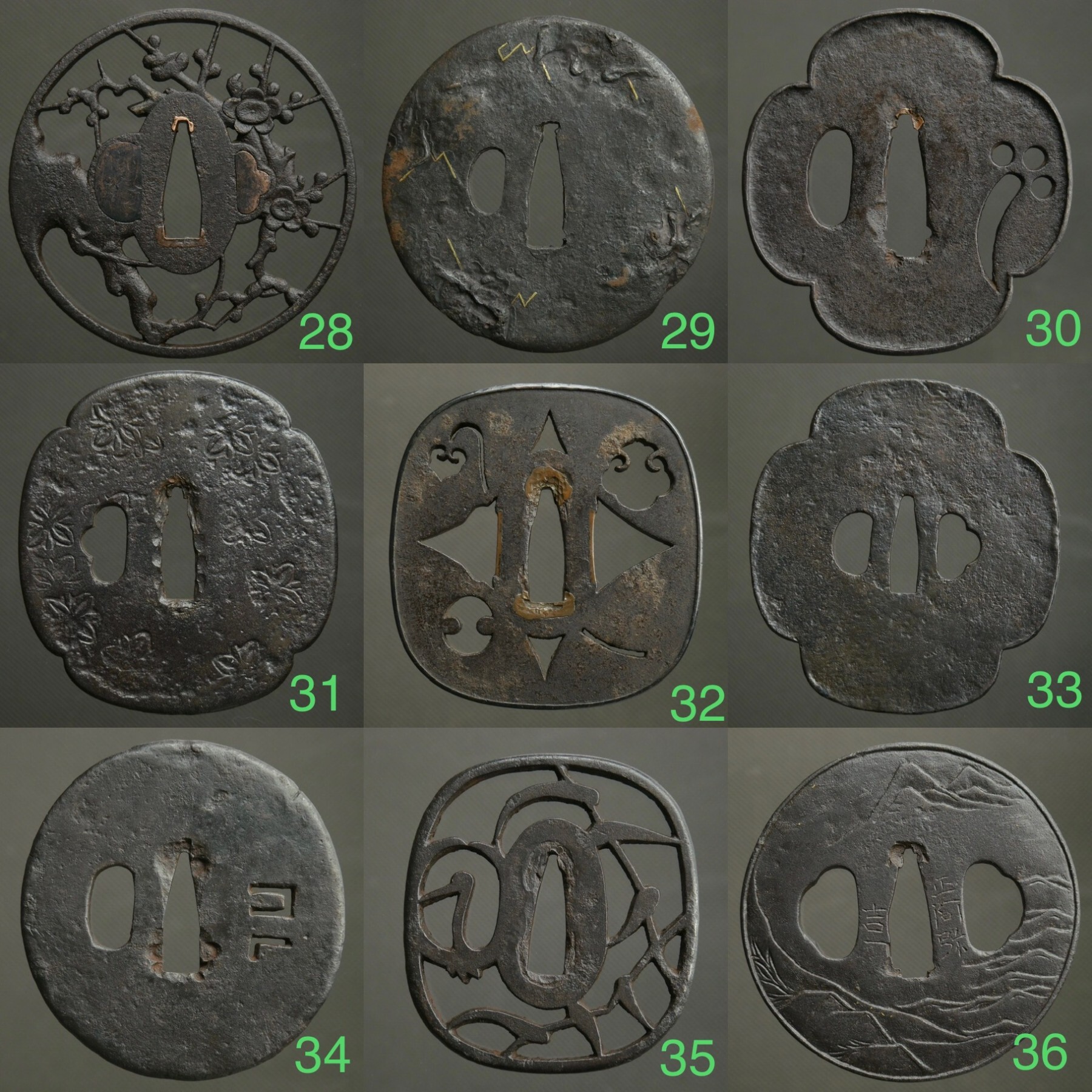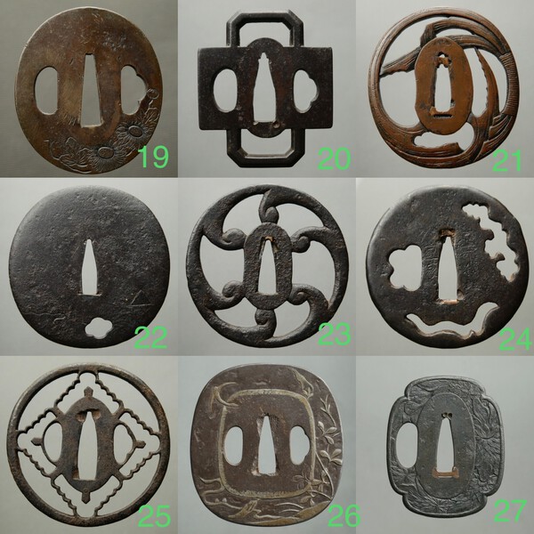 Hello everyone, Over the past few weeks, I've done a thorough review of my collection and decided which items are ready to move on. Below you'll find a selection of tsubas and other pieces that I hope may be of interest to those looking for something good to add to their collection or for comparative study. This isn't a typical "sale," but with the end of the year and the general discount season upon us, I've decided to set prices more flexible than usual. If anyone is planning to buy two or more items, I'd be happy to discuss a reasonable discount. I invite you to browse through the selection—maybe something will catch your eye. If you have any questions about provenance, condition, attribution, or stylistic comparisons, I'd be happy to chat. 1. €149,- $172,- _ 2. Sold _ 3. Sold _ 4. €129,- $149,- _ 5. Sold _ 6. €79,- $90,- _ 7. €109,- $124,- _ 8. €125,- $145,- _ 9. €149,- $172,- 10. €85,- $99,- _ 11. Sold _ 12. Sold _ 13. Sold _ 14. €69,- $80,- _ 15. €65,- _ $75,- _ 16. €60,- $70,- _ 17. €99,- $115,- _ 18. €85,-$99,- 19. €65, $75,- _ 20. €115, $133,- _ 21. €115, $133,- _ 22. €120, $139,- _ 23. €125, $145,- _ 24. €115, $133,- _ 25. €125, $145,- _ 26. €129, $149,- _ 27. €129, $149,- 28.€275,- $319,- _ 29. €135,- $155,- _ 30. Sold 31. €149,- $170,- _ 32. €149,- $170,- _ 33. €125,- $145,- _ 34. €125,- $145,- _ 35. €90,- $105,- _ 36.€149,- $170,- 37. €125,- $145,- _ 38. €119,- $139,- _ 39. €150,- $175,- _ 40. €125,- $145,- _ 41. €150,- $175,- _ 42. Sold _ 43. Sold _ 44. €150,- $175,- _ 45. €159,- $185,- tsuka: 1. €120,- $139,- _ 2. €150,- $173,- _ 3. €229,- $265,- _ 4. €85,- $98 _ 5. €295,- $340,- _ 6. €429,- $497,- _ 7. €120,- $140,- _ 8. €149,- $173,- _ 9. €180,- $207,-