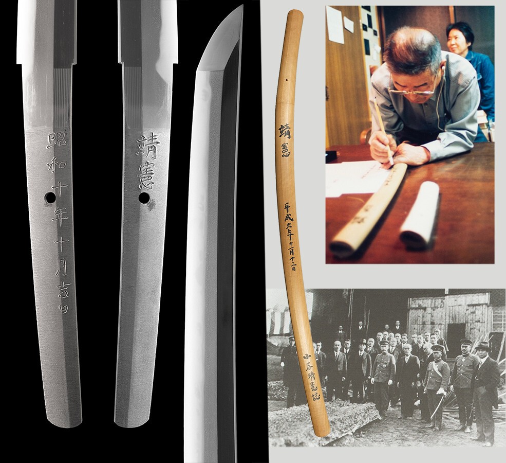 This katana by Kotani Yasunori, in October 1935 is recorded as his third blade he made at the Yasukuni Shrine— according Kotani's daughter the first went to the Shōwa Emperor, the second to the Imperial Household. It was owned by Kudo Haruto, chairman of the Yasuki Steel Company and one of the founders of the Nihontō Tanren Kai. In the 1990s, it was polished by Okisato Fujishiro, and Yasunori himself added a saya-gaki to the blade. It was later exhibited at the 60th anniversary Yasukuni exhibition and comes with extensive documentation and a 1997 NTHK paper.
