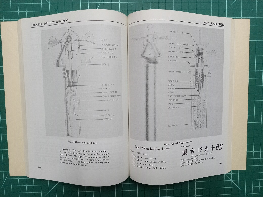 Grenade Launchers & Ammunition Price for both books below is US$150 including shipping to United States. Babich, Gregory A., and T. Keep. Imperial Japanese Grenade Rifles and Launchers. Dutch Harlow Publishing Company, 2004. New, dust jacket, hardcover, 8.5 x 11 inches, 248 pages, color illustrations. Weight 3 lb 6 oz, printed in USA. The book covers the launchers & accessories (pouches, wrenches, etc.), grenades, and propelling cartridges. US$85. United States. Departments of the Army and the Air Force. Japanese Explosive Ordnance: Bombs, Bomb Fuzes, Land Mines, Grenades, Firing Devices, and Sabatage Devices. Army TM 9-1985-4. Air Force TO 39B-1A-11. March 1953. Beige softcover plus side stapled, 7.75 x 10.25 inches, 264 pages, grayscale illustrations. Weight 1 lb 3 oz, printed in USA. Condition is excellent except the cover has separated from the text. The glue hardened and became brittle. I have l left it as is but it can be repaired. No writing or highlighting, no tears or missing pages (still stapled). Not a reprint. US$85 including shipping to United States, overseas shipping is about $45.
