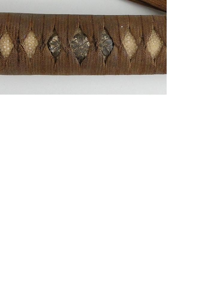 If anything, the color of the menuki would be the one indicator whether the silver plating/painting was done post war or if its original to the gunto mounts. As mentioned earlier, its the one piece that would the most difficult to remove, and the tsuka wrapping looks untouched. Anyhow, me thinks its gold, but it could be the lighting. If it were silver-colored, then the mounts possibly wouldn't be a complete fake, but still, crazy $$$.