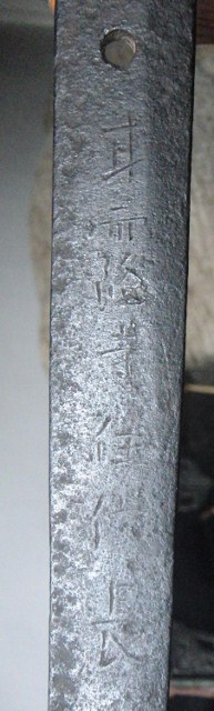Once again I must thank all who contributed to the translation of this sayagaki, we have a tremendous resource here and are very lucky to have these people to help us out. So pushing my luck with the last two pictures I once again ask for your help, as you can see one is on the end of the saya, and the other is on the end if the short pole. Thanks again. Chris.F.