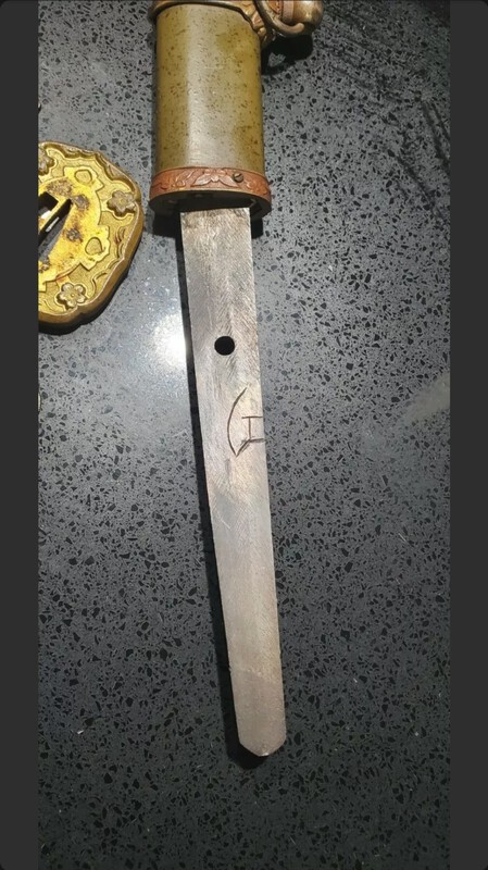 Bazza, thank you for your comment. I shall fix the tsuba post haste! It is an iron tsuba I believe and th4 koshirae came with a Kogai and no kozuka. It's definetly an incomplete package.