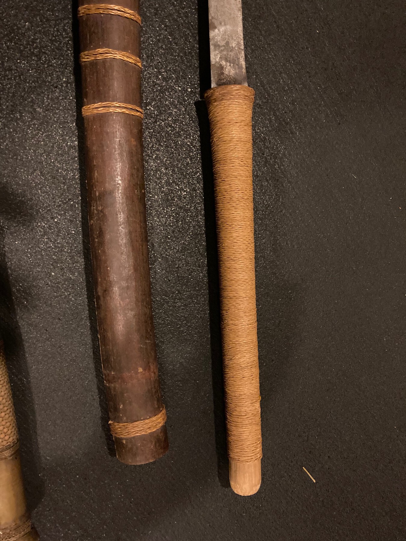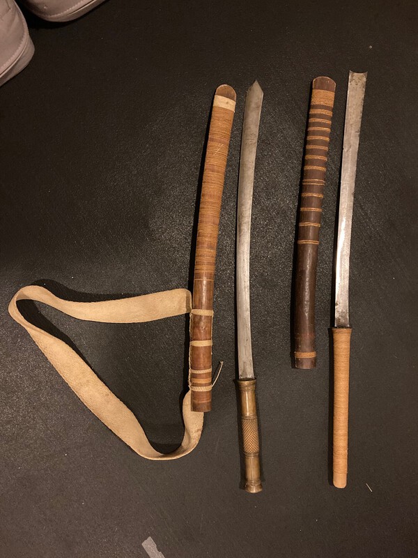 I moved recently, and when going through boxes I found these two old swords that my Grandmother gave to me years ago. At the time, she told me a US soldier stationed in the Pacific sent them to her during WWII (sounds like there are lots of family stories like this!); they do not appear to be traditional Japanese military swords that most folks collect, from what I can tell at least, but I would be interested and grateful to know what they are. I came across this forum when searching, and I was hoping someone here might know. Thanks so much for any info you all might have, and I hope this finds you having a good weekend.