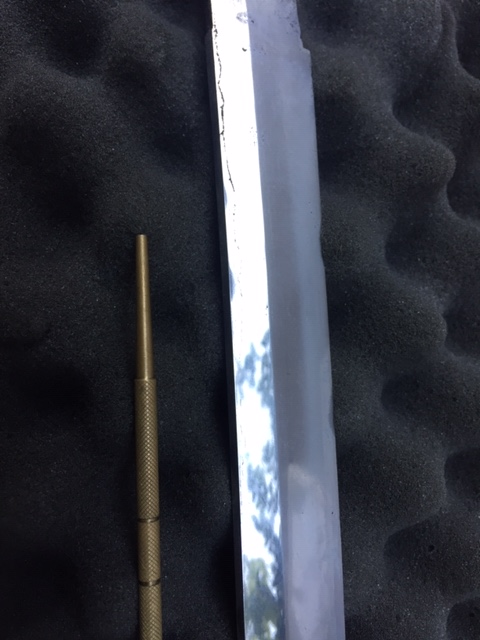 Thanks JP and Brian. Do you think it is suriage or ubu? Kazu -ichi-mono would be disappointing but would explain these flaws. Despite the flaws it still looks beautiful in the right light. Just wish I could get a good idea of the aprox time period it comes from.