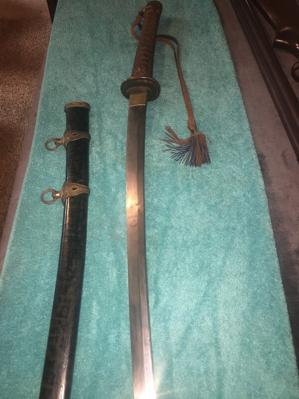 I bought a collection of guns from a lady whose husband had passed. Only backstory I have is that the husband's father was in WW2 and brought this back. She included it in the purchase. If I am correct its a Japanese Navy company grade officers sword. My questions are should I try to find a bamboo pin to replace the bolt and should I (being a complete novice) attempt to remove the handle at all? Thank you in advance. Chris
