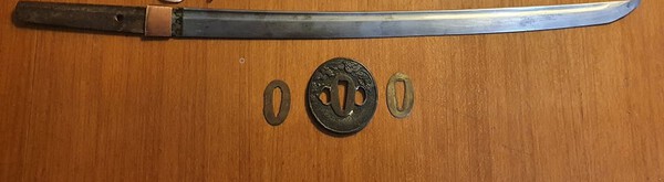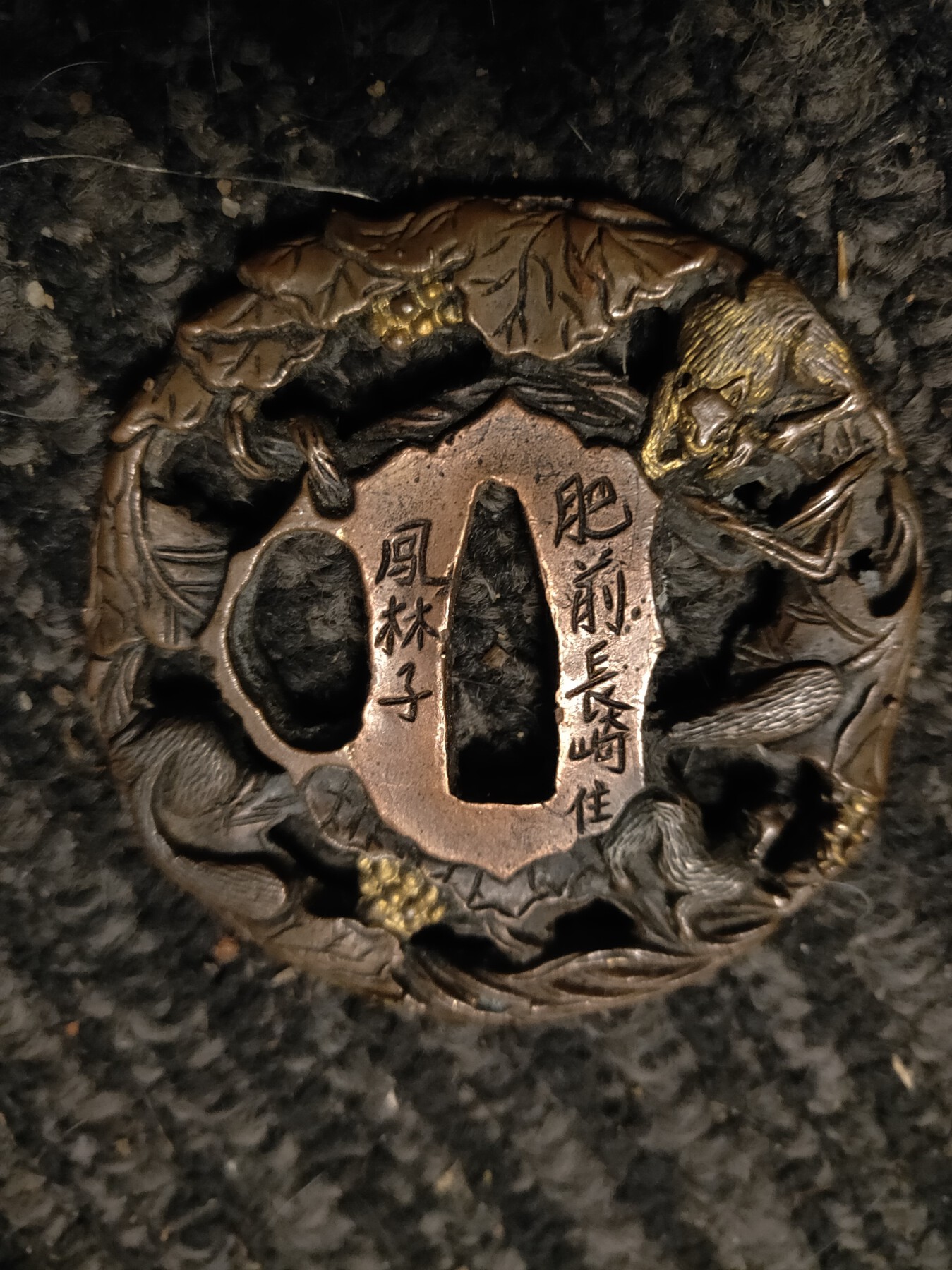 Hi, I inherited this from my brother and would like a translation of both the Mei and Tsuba script if possible please. I am trying to learn but am very new and confused easily . Help always appreciated and thanks for any time spent.