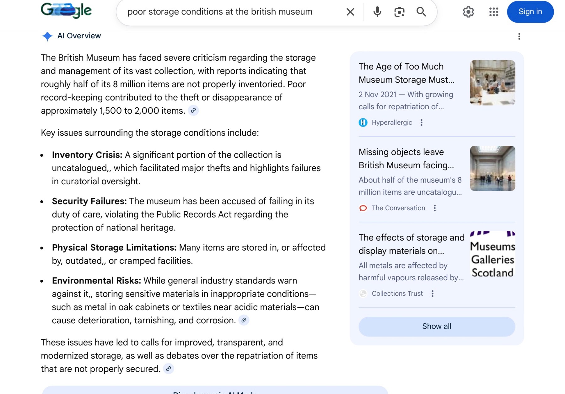 Michael, I am equally happy to praise and often do but what I have pointed out about the British Museum and its problems is factual, not an opinion.…..and maybe the the critical overtones are justified…..the video in question certainly does not deserve much praise does it? The BM holds far more stuff than it can ever really look after adequately let alone display to the public and whilst facilitating private viewings is admirable that isn’t what is under discussion. What is the actual reality? -