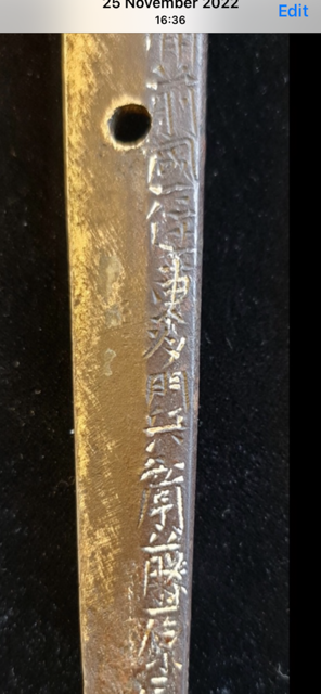 Hi Colin, it’s not been stared yet.the chip will polish out , but 1st it’s a fabulous sword ,2nd it’s the best horimono I’ve ever taken the time to really study close at hand, 3rd the tang being double signed by the smith and the ingraver are in their own rights a work of art . When it’s polished to the high standard I know it will turn out , it’s the perfect package. As and when it’s finished I will , with the new owners permission send you some pictures.regards Brendan -