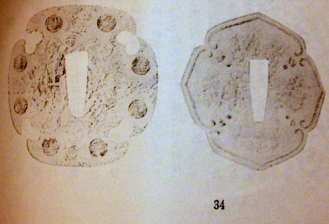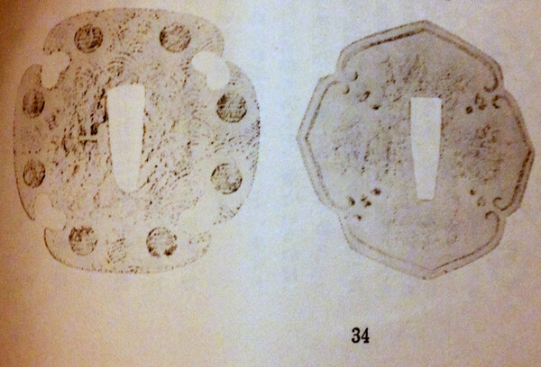 Hi Curran, Here is a photo from page 34 of Tsuba Geijutsu-Ko. I own both books. The quality of the original reproduction (likely a charcoal rubbing) in the book isn't very good hence the even poorer reproduction in Tsuba An Aesthetic Study. I hope you find this helpful.