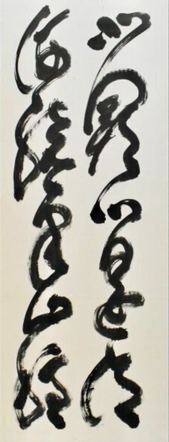 This is a gorgeous work in outstanding condition by Yamaoka currently being offered in auction that I cannot find a reference for in published books, prior online auctions or well-known online collections. Many of his work of this kind consists of of a set of 6-panel screens. This is one screen, which may suggest that it has been separated from the original set. Or it may have been intended as a single screen. I suspect that the translation may help solve this mystery. As usual, Yamaoka's cursive script, while consistent, is highly idiosyncratic. I find it very hard to decipher, although I am trying to learn his style from a famous poem that he brushed to provide instruction on calligraphy for his wife. Some of the challenge is also how he connects kanji or hiragana characters. This work is clearly pure kanji, which suggests that it is a poem or Ch'an teaching. He was classically trained in Chinese literature, poetry, and Ch'an writings.