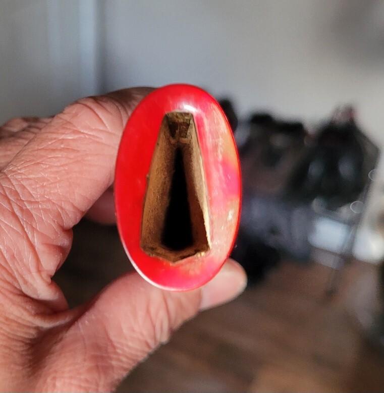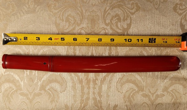 Hello everyone. Yesterday I posted a Bizen tanto. This is the koshirae that came with it. Strangest thing I've ever seen. I've seen red "ebi" koshirae and the black with red saya...but all red. Also the slight indentation on one side of the tsuka. Poorly made? Modern "throw together"? This is all a new learning experience for me as far as tantos.