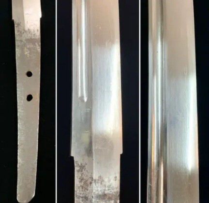 Hello all. I received a nihontou from Japan. Though it has ware, the yokote is off, and some stains, I'm please for what it is...and the price. The mei/gimei is difficult to see. Sorry, I tried different ways of photographing the nakago, but I just couldn't get a good shot of the Mei. (Dark background and lighting from the side)