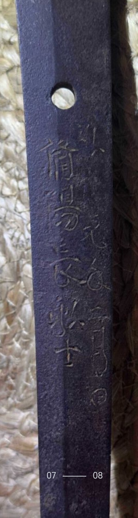 Mekugi ana are made in similar spot so theory that chuso position depends on it isn’t reliable. Still boston’s murata-to is in T94 but without second hanger [if original to blade?]