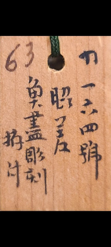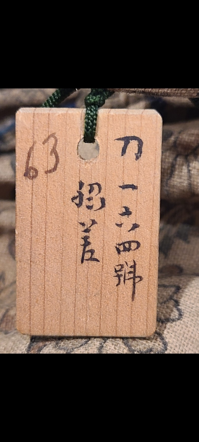 I just obtained an old Japanese sword from WWII - from my grandfather's attic (who passed a while back) it had a bamboo tag on it that looks like an inventory tag? I managed to get the hilt off, but the characters are very dark and hard to get a shot of. I was debating a polish of the hilt to try and make out the characters, but looking at the posts some people might scream at me. Just trying to see if additional research would be a waste of time. I figure the right side of the tag is a year or inventory number and I found the bottom character of the gold on the hilt is a single syllable 'shi?'. If it doesn't look like it is an old Majong tile, I can take a few more photos amd post them - don't want to waste people's time. Thanks for any help I can get.