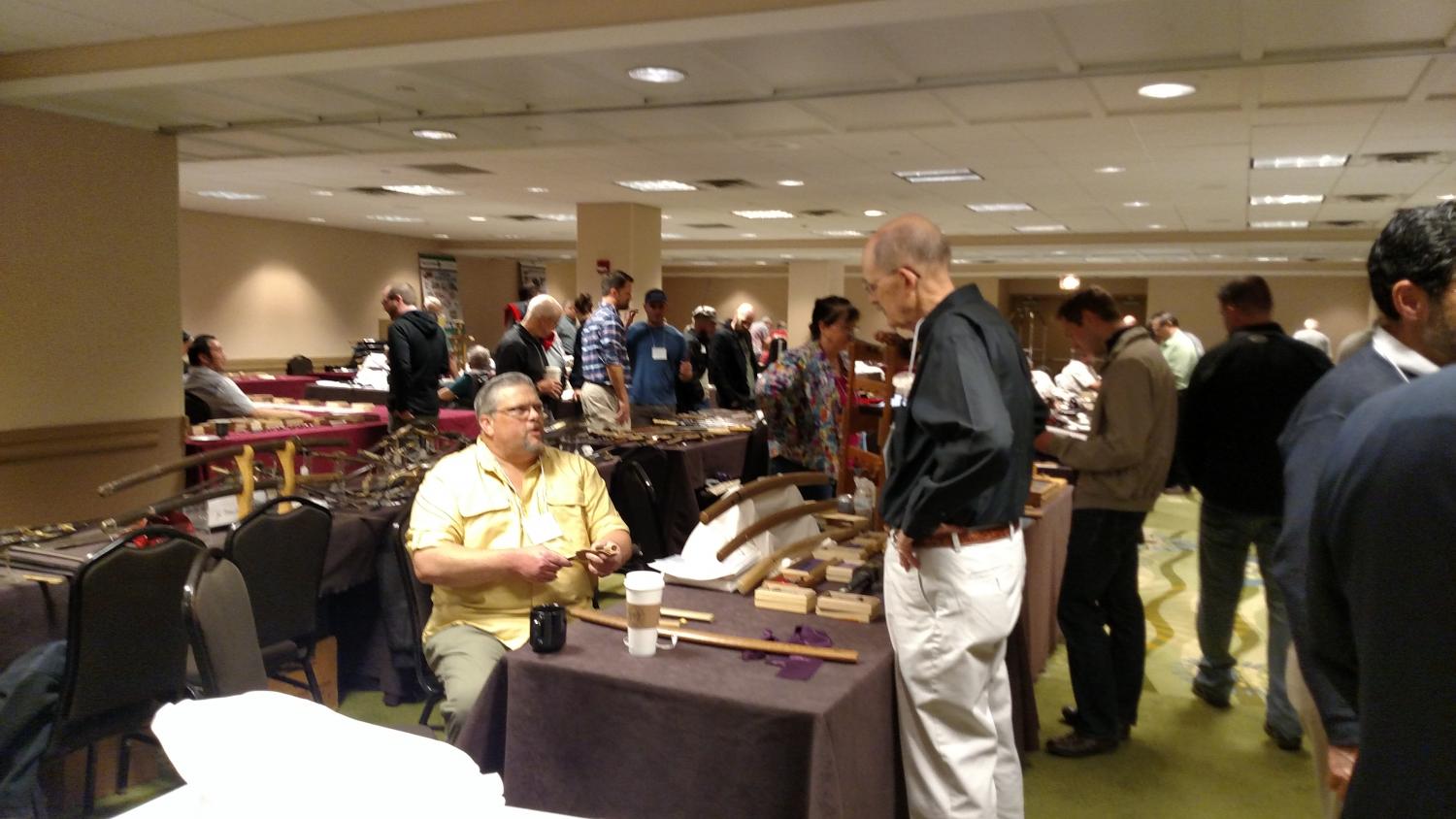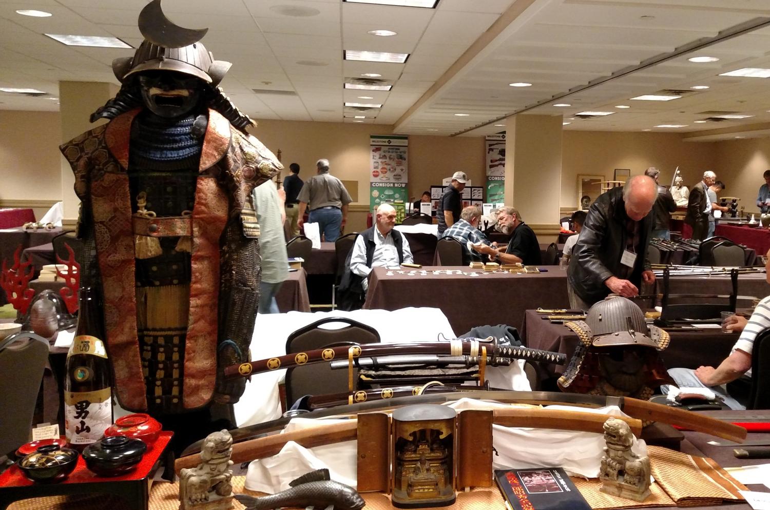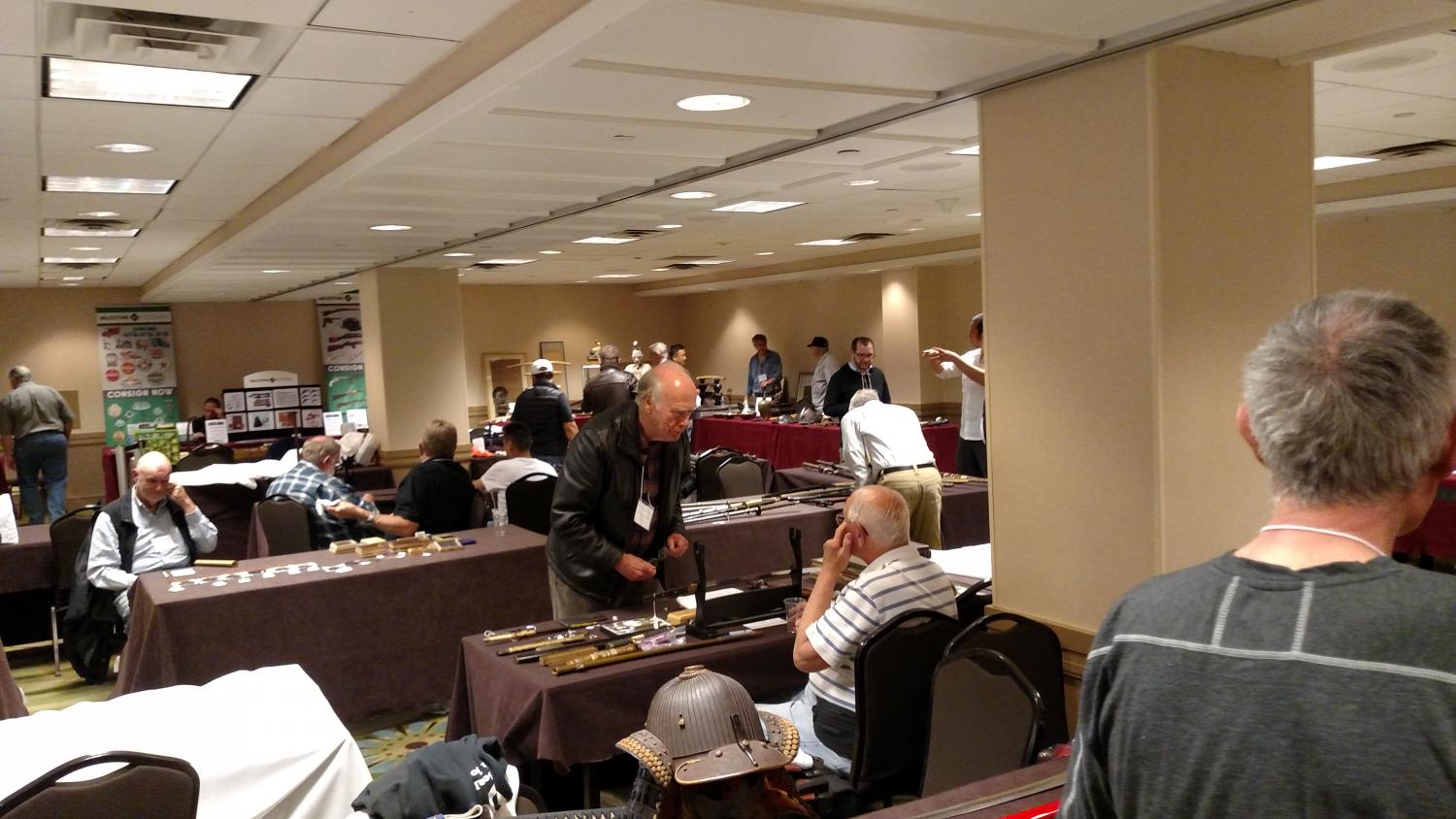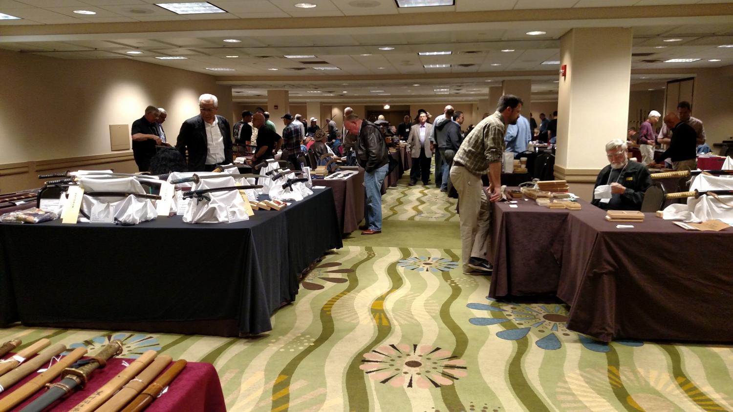 here are some pictures. The show seemed to go smoothly. I saw a person bring in a kabuto for sale, someone brought in a 28" katana with cutting test and sold it, a tanto by Satsuma Motohira (these were off the street, out of the woodwork so no papers), some nice military swords came in, a navy with shagreen saya that was very clean, a number of army swords, not sure what types of blades, there seemed a steady flow of traffic and at 3pm sunday (closing time) there were still quite a few exhibitors still open and doing business. There were a number of Juyo swords at the show, some available for sale some for display. I heard from a number of exhibitors who were very happy with some items they found, nice large ko-kinko tsuba, a potential kamakura daito found on a table. A lot of table holders are local so you only see their items at this show as they do not travel. Hopefully some other NMB members will comment on their thoughts when they return home and are settled, my view is from the perspective of the promoter. -