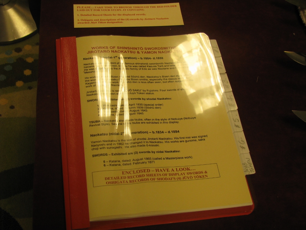 I will let others give their opinions of the show as it would be self serving to say anything positive from myself. but I will say some things about what was there... The NBTHK American Branch put on a GREAT program Saturday afternoon, they first had a kantei session with 2 blades, one of the a Chogi, then Bob Benson reviewed the kantei "guesses" and explained some pointers to help participants learn. Then they put out a group of SoShu blades, all Juyo and higher, as I recall: Chogi - powerful and wild SA Hiroyuki - elegant SA Sadayohi - fantastic horimono Yukimitsu- just "Wow" Usually these exhibitions are for members and others can come in for a small charge but the NBTHK (AB) genourously opened it to all at no charge. You could walk in and walk up to each blade, pick it up, examine it, study it (great sword viewing lighting was set up). What a great opportunity to learn hands on. It was very kind of the owners of these fine swords to share them with anyone who wanted to study them. In the show room was the display of Naokatsu as mentioned before, Thank Ron!!!!! Also there was armor displayed (available for sale but great to see). There was a display of fine menuki. A real highlight was a display of Very Special Tsuba, they are Daimyo fittings. The owner, from Japan, brought them to display, he had printed information and he was happy to answer all questions and discuss the history and provenance of all the items. I am not a tsuba collector so hopefully someone else will provide more information but I remember one was a Miyamoto Musashi tsuba, others owned by Daimyo and important historical persons. This was a better display (items together in one place) than you would see in a museum in Japan. As a side note the owner said he was so happy to see the items being appreciated that he will bring some other special items next year ( I heard him mention a Masamume but we will have to see next year). From a business end: it was encouraging to see a Japanese dealer in attendance, he flew in just for the show. It seemed he had a successful visit and I saw him carrying a lot of swords out of the room and he needed additional cases to pack the items (I was happy to donate a case as a few of the swords were mine and I did not need as many cases going home. A number or dealers commented they had great shows, one said it was his best show in 20 years, another was excited to sell a high end item they had carried to shows for several years. Buyers perspective: I know quite a few swords were brought in from by the public, I saw them come in but as promoter I wanted to make sure those in the room had the opportunity so I worked hard to buy none of the swords that walked in. I did hear some quite excited about items they bought. Maybe some will comment about that (as I said not buying any I have nothing to say). There seemed to be some very good deals on tables and a lot seemed to find new homes. that is all from me for now. I hope others will give there thoughts