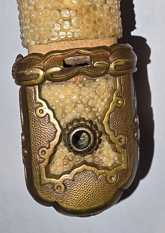 Thanks for the pics and info Rawa. I won't do the work myself just trying to find all the correct parts. I have been looking for a set of menuki with mon, but so far no luck. I asked the seller of the sword if he had any of the parts and he does not. The clasped hand sarute would look really nice on this sword. If anyone has any of those parts that they would sell for the restoration project please let me know. Thanks, Eric