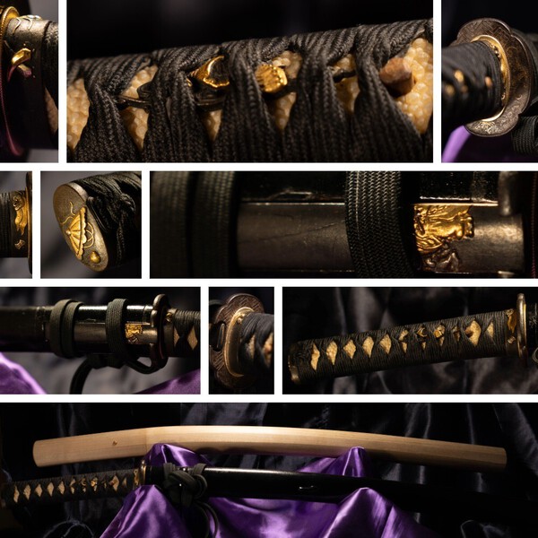 Hello everyone, After being interested in Nihonto for a while now, mainly due to practicing katana related martial arts, I managed to acquire my first one during a recent trip to Japan. It arrived last week, and I finally got the chance to try and take some pictures on the weekend, I will attach them below since I don´t know how to post them into the text here. While I am aware that this is by no means a top tier blade, the overall shape with the elongated Kissaki were quite attractive to me and it checked most of the boxes I wanted for my first blade. Furthermore it comes in full Koshirae, which at leas the Fuchi and Kashira are matching in a Takara-zukushi theme (not sure about the Tsuba honestly) and the Menuki seem resemble abalone shells. The main thing I was looking for was a blade at a reasonable price point where it doesn´t break the bank and that is pleasing to look at (for me). Also, I wanted to buy my first one in person, since it´s hard for me, as a beginner, to judge blades from pictures alone. The experience was well worth it, as I got introduced to proper maintenance as well as the basics for studying Japanese blades in person at the shop (for the record, I read a few books already but it´s always nice to learn in person). A visit at a nearby sword museum gave a nice closure to the day. For the blade itself: It is a shortened Wakizashi from around the Momoyama Period (Tensho). Due to it being a suriage blade, it is Mumei. The Nagasa is 44.6cm. Hamon seems to be Gunome mixed with Notare. As mentioned it has Koshirae as well as a Shirasaya. There are a few rust spots on the blade, but I was told those are inactive and not threatening to the blade. Let me know what you think Also, while writing this post I realized I forgot to take proper pictures of the overall suguta, so the phone pics will have to do for now.