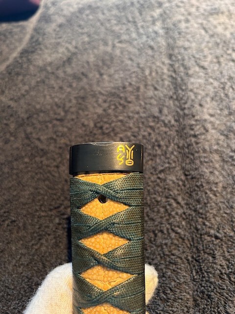 Hi Kratos, I took a closer look at the photos, videos and the paperwork. The sword is an Osafune Sukesada from the Bizen tradition, dated to the 10th year of Tenshō (1582), so right at the end of the Sengoku period. The long signature on the tang matches that date exactly. The NBTHK certificate is Hozon, that confirms both authenticity and quality. The overall style and shape fit really well with late Bizen work – slimmer sugata, clear hamon line, and very much in line with Osafune workmanship from that period. The koshirae is complete and features a dragon motif (fuchi-kashira and openwork tsuba). I’d put the fittings stylistically in late Edo, but they’re still collectible in their own right and add nicely to the package. All in all, it’s a well-documented piece with clear historical context and attractive mountings – definitely an interesting find for anyone looking for an authentic Bizen sword with a full koshirae. the signature on the Koshirae could be read as “Made by Masashige” ? This is most likely either the name of the craftsman who made the koshirae or possibly the name of a former owner? Blade length 74,2cm? Could that be? This is just roughly what i’m seeing as a first impression from the pics and the paperwork, but i’m definitely not an expert, so i’d love to hear what others think.