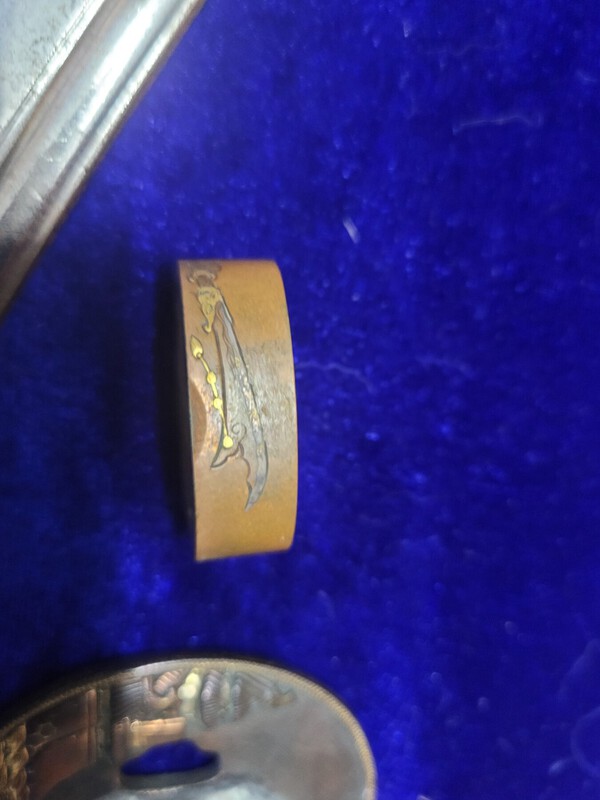 Hi, I have this wakizashi sword and need help telling who signed it. I found some late edo period tiger motif ones that are very similar with similar quality ray skin, gold tigers on the handle, gold enhance tiger related adornments, but this signature is different and this one is a horse motif. There is the tang mei signature, but there is also something written on one of the other parts. Any help with when it was thought to be made, who signed it, what the other signature is, if there is any record who it went to? Any neat history would be great. I have looked at hundreds of signatures and can't find a match. Also, the first character is boxed, is that symbolic of something? I saw no others with the first character placed in a square. Please let me know any detailed pics that could help.