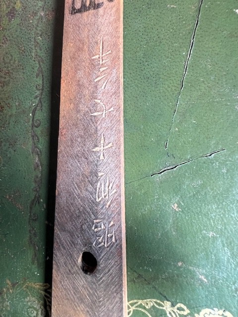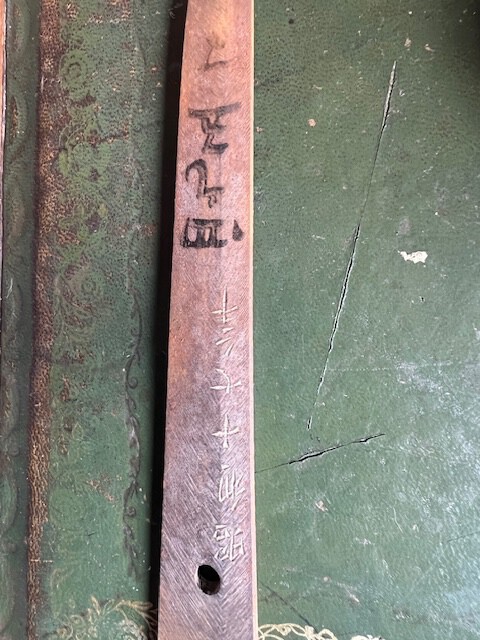 I have bought my first Japanese sword, as I see it as a regular Shin Gunto of a company officer. I have taken the handle off and found these markings on