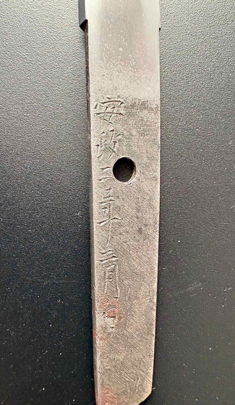 Hi, for sale is a wakizashi in mountings from Nankai Tomotaka. About the smith: TOMOTAKA (朝尊), Tenpō (天保, 1830-1844), Yamashiro – “Tomotaka” (朝尊), “Tomotaka tsukuru” (朝尊造), “Yamashiro no Kuni Nishijin-jū Tomotaka” (山城国西陣住朝尊), “Tosa no Kuni-jūnin Gonnokami Tomotaka” (土佐国住人権守朝尊), “Nankai Tarō Tomotaka” (南海太郎朝尊), “Morioka Tomotaka saku” (盛岡朝尊作), “Yamashiro no Kuni Hataeda-gū Tomotaka” (山城国幡枝寓朝尊), Tarō Tomotaka tsukuru” (太郎朝尊造), “Ichijō Horikawa-jū Nankai Tarō Tomotaka” (一条堀川住南海太郎朝尊), real name Morioka Tomotaka (森岡朝尊), “Nankai Tarō” was his pseudonym, he was born in the third year of Bunka (文化, 1806) in Kuroiwa (黒岩) in Tosa´s Takaoka district (高岡郡), he signed his name Tomotaka first with the characters (友朝), during the Bunsei era (文政, 1818-1830) he moved to Kyōto where he took care of a later generation Iga no Kami Kinmichi (伊賀守金道) and supported the court noble Chigusa Arikoto (千種有功, 1796-1854) in forging swords, during the Tenpō era (天保, 1830-1844) he worked temporarily also in Edo´s Yushima-Tenjin (湯島天神), Tomotaka was a follower of the fukkōtō movement and on par with Suishinshi Masahide when it comes to the theoretical aspect of the Japanese sword, he wrote philosophically-inspired works like Tōken Gogyō Ron (刀剣五行論, “The Five-Elements Theory at Swords”) or the Zōtō Shinki Hō (造刀心気法, about “The Integration of Emotions at Forging Swords”), but he also compiled oshigata collections like the Shintō Meishū Roku (新刀銘集録), he died in the second year of iō (慶応, 1866) in Kyōto at the age of 61, we know date signatures from the fifth year of Tenpō (1834) to the second year of Genji (元治, 1865), there are katana, wakizashi and tantō extant, some also in kanmuri-otoshi-zukuri, his blades have mostly a magnificent sugata with a wide mihaba and an elongated kissaki, Bizen-style blades have a more elegant sugata with a relative short nagasa, his hamon is mostly a ko-chōji-midare in nioi-deki which reminds of Ōei-Bizen, sometimes also an ō-midare, hitatsura, or suguha in nie-deki is seen, when he worked in the Yamashiro tradition, he hardened a chū-suguha in ko-nie-deki in combination with a beautifully forged masame mixed with ko-mokume, in rare cases he also hardened a hitatsura, some blades show elaborate horimono, the signature is quite angular and he also signed with an additional kaō, jō-saku This Wakizashi is made in Bizen-den style and was made in Bunsei 13. Signature is: heian kujo-ju tomotaka. Measurments: Nagasa: 45.2cm Sori: 1.3cm Moto-Haba: 2.84cm It comes with Mountings, Bag and Tokubetsu Hozon Papers. Price 3000 Euro (including shipping inside EU) For offers or questions please send me a PM, Thanks Oliver