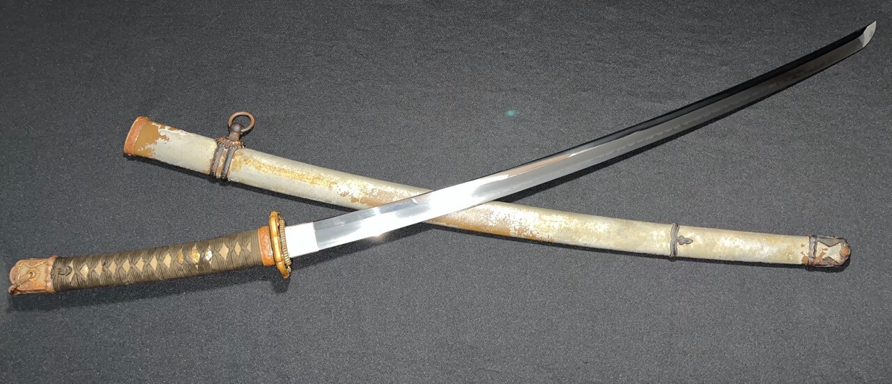 A Japanese WWII gendaito sword by Kojima Kanemichi is available. Notably, Kanemichi earned the title of Sword Forging Teacher, the highest rating, at the 1941 Sword Forging Exhibition. Therefore, this World War II Japanese sword represents an important acquisition for any serious collection. Importantly, this blade represents early work by Kanemichi. He forged the sword in May 1940, recorded as the 2600th year of the founding of the Japanese Empire. The tang bears the signature “Noshu ju Kanemichi saku kore.” Additionally, Kanemichi crafted this blade as a traditionally made, water-tempered gendai sword. As expected for a traditionally forged blade, it carries no Showa or arsenal stamp. Collectors and dealers will likely agree--about 85% of swords by Kanemichi encountered are showato, so to locate a gendaito is significant. The blade measures 26 3/4″ (68.0 cm) from the tip to the bottom of the notch in the habaki. Furthermore, the sword retains its Army shin-gunto mounts, which complement the blade well. At the 1941 Sword Exhibition, Kanemichi received the rank of Special Honor Noted Seat – Sword Forging Teacher. In addition, experts rank him as a 2 Million Yen smith. John Slough notes in his book: “His real name is Kojima Tokijiro. Kanemichi was born in July 1902. At first he studied under Kojima Katsumasa, who had previously studied with Zenjo Kaneyoshi. Later, he trained under Watanabe Kanenaga. He was a Rikugun Jumei Tosho and had many students.” CONDITION Overall, the blade remains in fine polish. It shows only a couple of fingerprints, which uchiko will likely remove. Moreover, the edge shows no nicks, and the blade remains perfectly straight. The hamon (temper line) and boshi are healthy and well defined. Finally, the sword saw service during the war for more than five years. As a result, the saya lacquer shows wear and is missing in several areas. Additional photos at the link below. $2900 plus postage --Matthew Brice https://stcroixblades.com/product/kanemichi-Japanese-wwii-sword-ww2-army-2-million-yen/