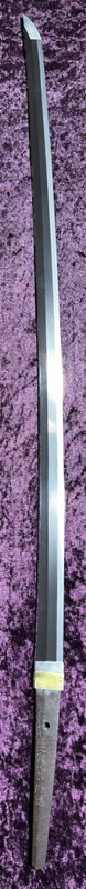 Found this katana at an auction;the blade and kissaki look like they’ve been heavily polished or ground down. What could have happened to it? A quick wartime polish, or did some owner ruin it over the years? The kissaki is almost gone, and there are dark stains that almost look like old blood… The shape reminds me of a tired, over-polished blade maybe a showato that saw rough use in WWII and was later cleaned up in a hurry? Or worse, someone took a coarse stone to it, grinding away the geometry. The hamon is faint, if it’s even still there, and the tip is practically nonexistent. Then there are those stains… age and rust, probably, but they have that eerie reddish-brown tint that makes you wonder. If only swords could talk. The mei is still somewhat visible; anyone recognize this smith? What do you thin; battlefield salvage, bad restoration, or something else entirely?