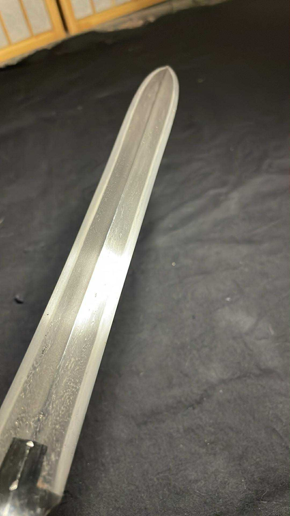 Hello again ladies and gentlemen, here is one more for the evening. Type (Tachi, Katana, Wakizashi, Tanto, Naginata, Other) : omi yari Ubu, Suriage or O-Suriage : Ubu Mei : (Mumei, Signature) : Signed two kanji Kanenori, by the workmanship, mainline Mino, one nakago-ana. Papered or not and by whom? : No Era/Age : Late Muromachi, circa 1530 Shirasaya, Koshirae or Bare Blade? : partial koshirae. Nagasa/Blade Length : 28cm or just over 11 inches, with kubi it is 12 inches Sori : none Hamon Type : Chu-suguha Jihada : Running itame with mokume and masame elements. Other Hataraki Visible : Kinsuji, inazuma. This blade has A LOT of activity and is an eyeful! Flaws : a few small ware, one small fukure midway on one side, five kirikomi, a few pits. Sword Location : Indiana, USA Will ship to : USA primarily, international contingent on laws of destination country. Payment Methods Accepted : Paypal, Cashapp. Shipping options discussed at time of purchase. Price and Currency : $1400 USD or reasonable offers. Other Info and Full Description : Comes in a saya. The smith is likely to be one of the mainline Mino Kanenori of the late Muromachi period judging by the workmanship. This is a very petite 'omi yari' as with the kubi included, it just comes in at 12". Despite its size, it has FIVE kirikomi or 'battle scars' and is in great condition for its age. Another lovely yari in fine condition for its age. It sports a ryo-shinogi (double ridge) which is rather uncommon provides for a very distinctive look compared to many other yari. Enjoy!