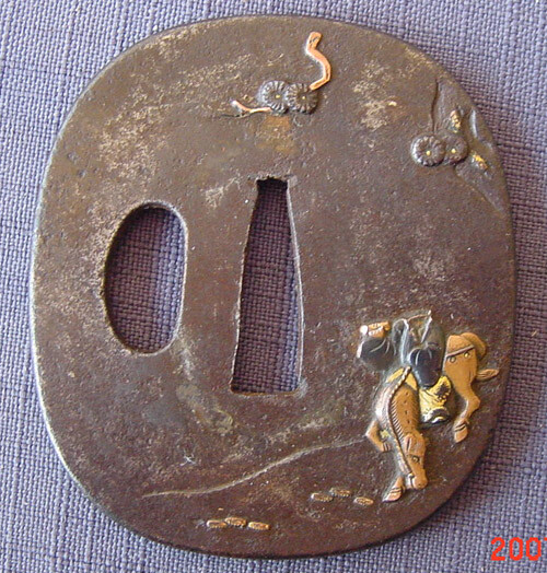 Brian Posted August 18, 2007 Report Posted August 18, 2007 This one came on a wakizashi I came across recently. On inspecting it closely, I was perplexed to find that the horseman has lost his head It's odd that I can't see marks where it once was, but it looks to have been removed cleanly. A real pity, as I like the horse. Perhaps something caught on an exposed edge and decapitated him? Maybe the inlay just fell off over time. Could it have been removed deliberately for some reason? Interested in any comments. It's a pity there is no legend of a Japanese headless horseman Brian PS - If anyone finds a tiny little mixed metal head lying around, you know where to send it :lol: Quote