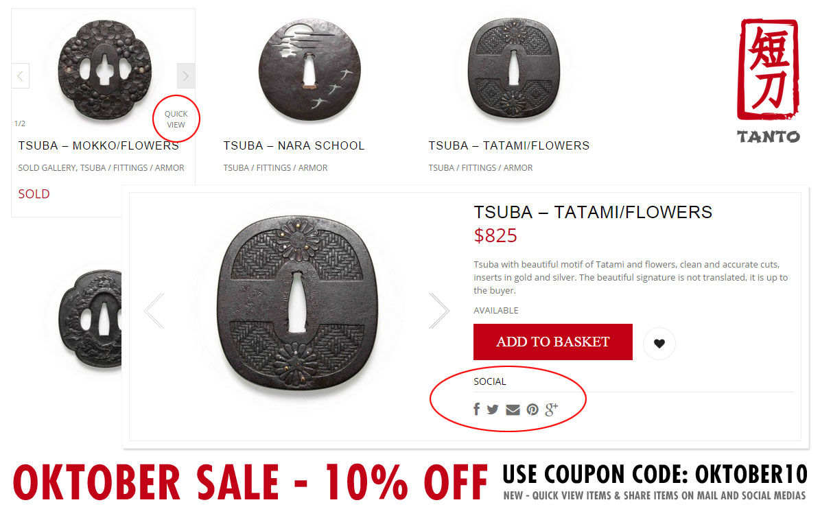 Jorgensen Posted October 17, 2014 Report Posted October 17, 2014 Dear collectors, 10% discount on all items this month. Use coupon code: OKTOBER10 on checkout. Website is here: http://tanto.dk/shop/ New features added to website. Now you can quickly share items with friends on mail or on social medias and quick view option is available too. Please write me if you have questions or suggestions (on mail rather than on NMB). OFFERS are also welcome. Support and donation will be given to the board on sales. Please write NMB in comments section upon checkout.
