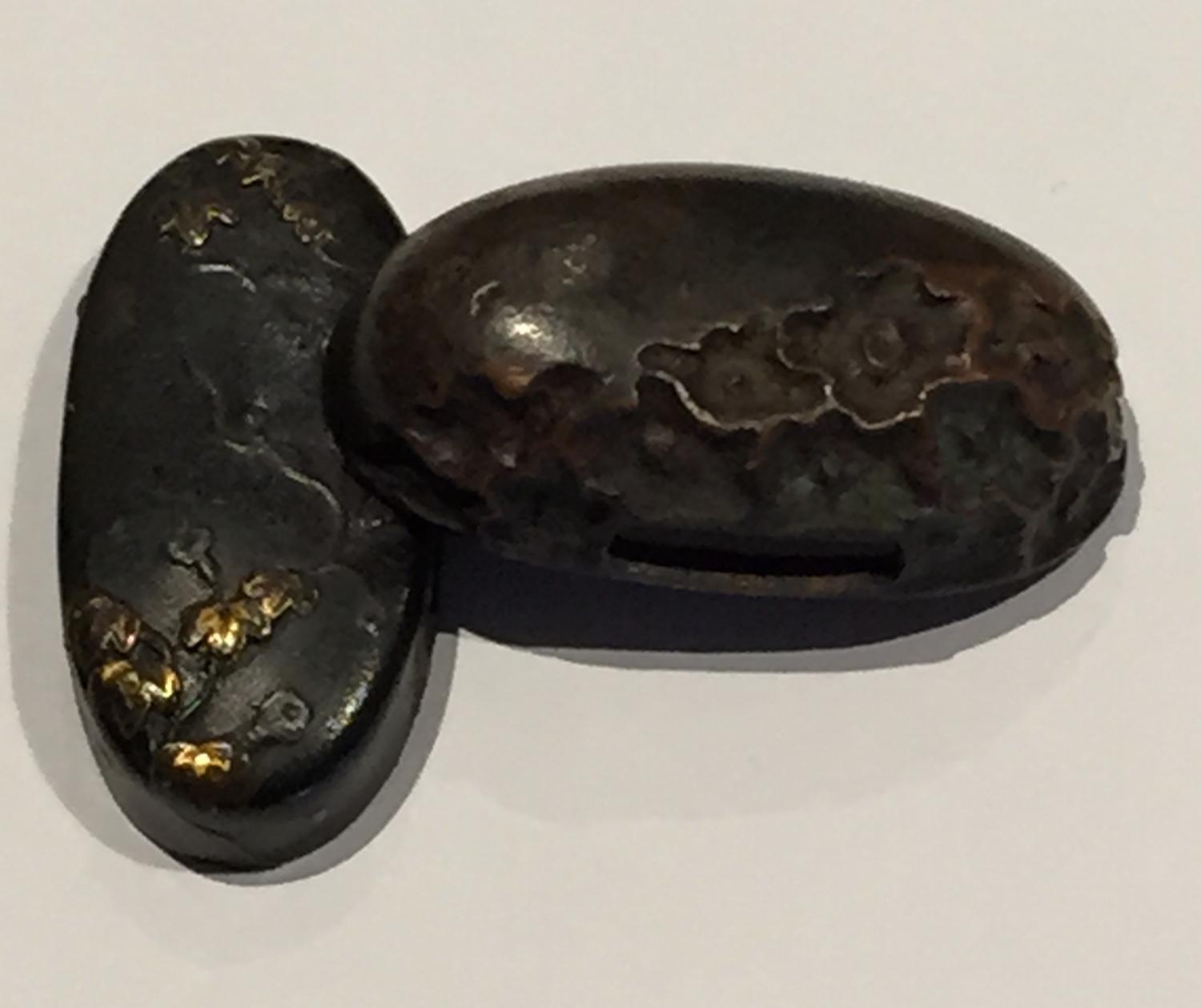 Barrie B Posted May 4, 2015 Report Posted May 4, 2015 Barry, I have these… The shakudo kashira might match one or two of them and the suaka one might be an ok match for your suaka fuchi (#1 in your second post) with a very light clean to match the tarnish on your Fuchi..? If you want them you can have them. I have no use for them and they do not have any shitodome sorry. Let me know if interested and I will send them to you - gratis. If you do not want them, then perhaps someone else can use them. Sizes: Shakudo: 34mm x 16mm x 7.5mm Suaka: 35mm x 19mm x 10mm Barrie.