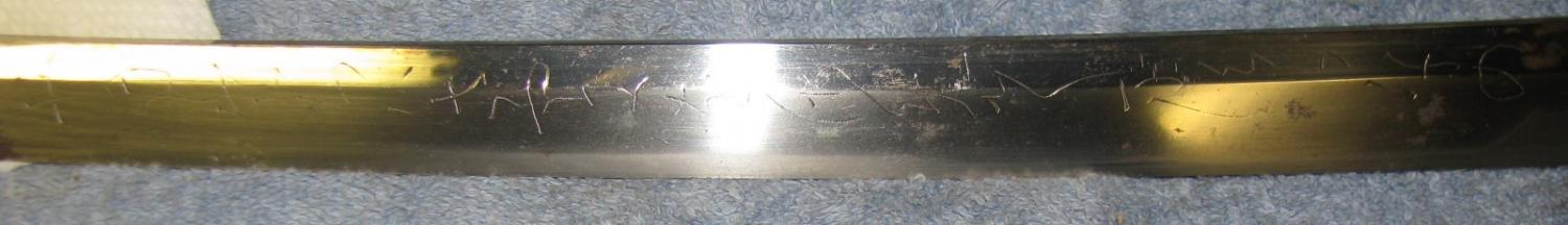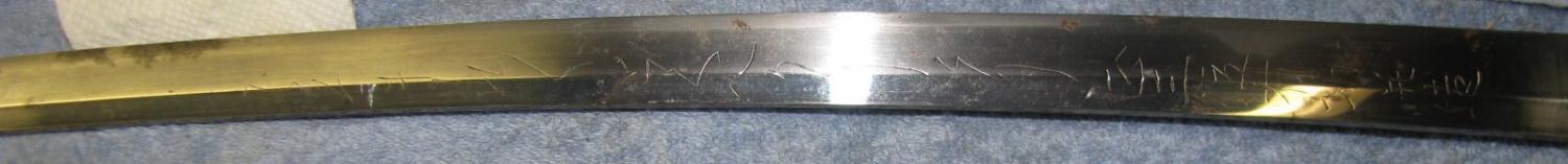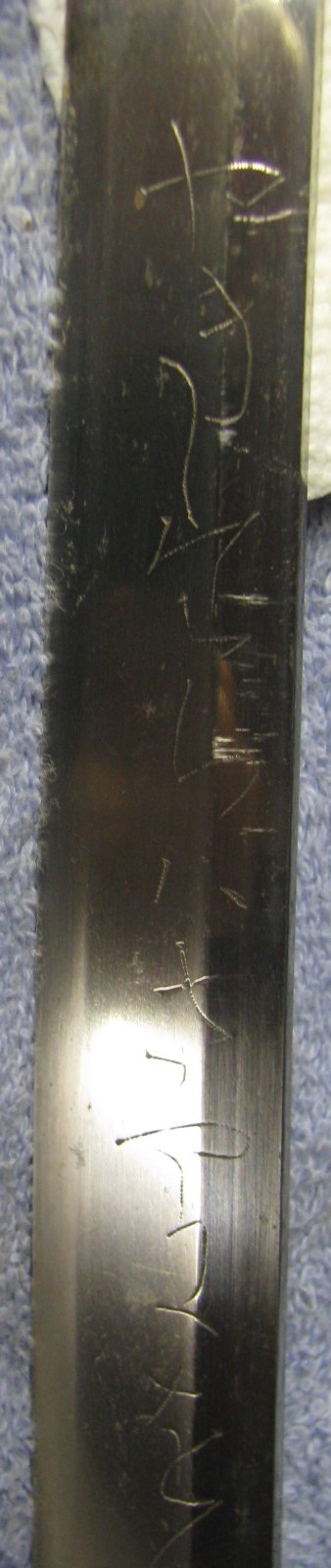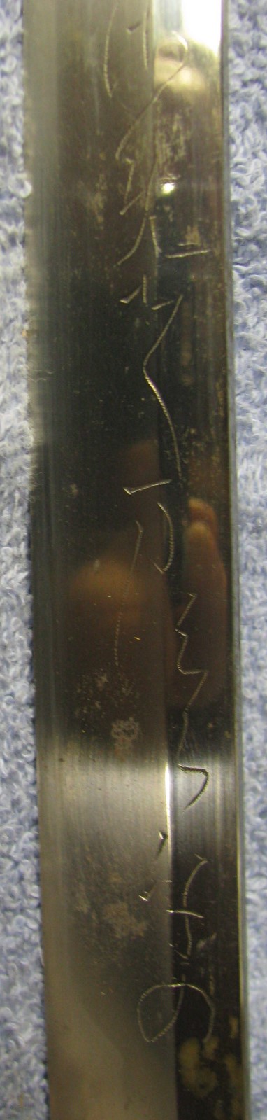 Mark Posted April 5, 2016 Report Posted April 5, 2016 I have a mumei (nothing on tang) wakizashi. I think the mei is on the blade along with an inscription, maybe a poem? I can see what i think is Sho or Masa, San or Mi, Ju AriSuke... i may be wrong with that, Looks like it was done with a dremel tool but it seems like it was written by someone familiar with kanji, not an American vet, and it came out of the woodwork so not done in the past 40 years. any help appreciated. Thanks! Quote