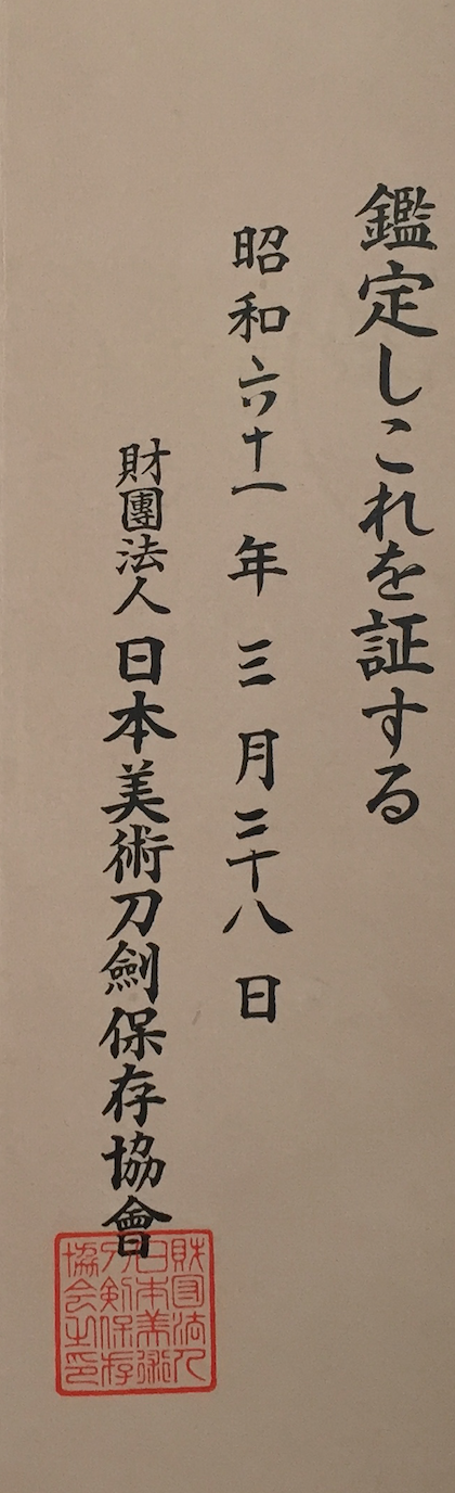 Timur Posted April 24, 2017 Report Posted April 24, 2017 I also wondered about the punch numbers on the paper. They are center a bit, with the last digit missing or hidden by the large photo. Also, it is written on the paper that the date given for the paper is March- which is a blade shinsa month. I found it odd enough that I went through 25 NBTHK H and TH papers to see if I had any dated 'in March'. None had the punch dated strayed like that. No March ones came up, so I'm left wondering if it is simply administrative lag and a bit of sloppiness. TH shinsa happening after H, therefore maybe it does drift into the next month and someone dates accordingly? Curran, sharp eye and interesting viewing angle! I looked through all mine. 28th of February - the latest. No March in "punched dates", though there is one kozuka having the papers issued on the 28th of March in 1986. Quote