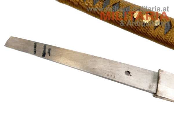 Bruce Pennington Posted May 24, 2023 Author Report Posted May 24, 2023 3 minutes ago, John C said: I think the assembly numbers for souvenirs all use black paint. Yes, I noticed that too. I’m going to start scanning stainless kaigunto blades to see what their numbering is like. I did a quick check yesterday, and found one with a four digit black painted number, which is more in line with what I would expect, considering how many blades they made during the war. Quote