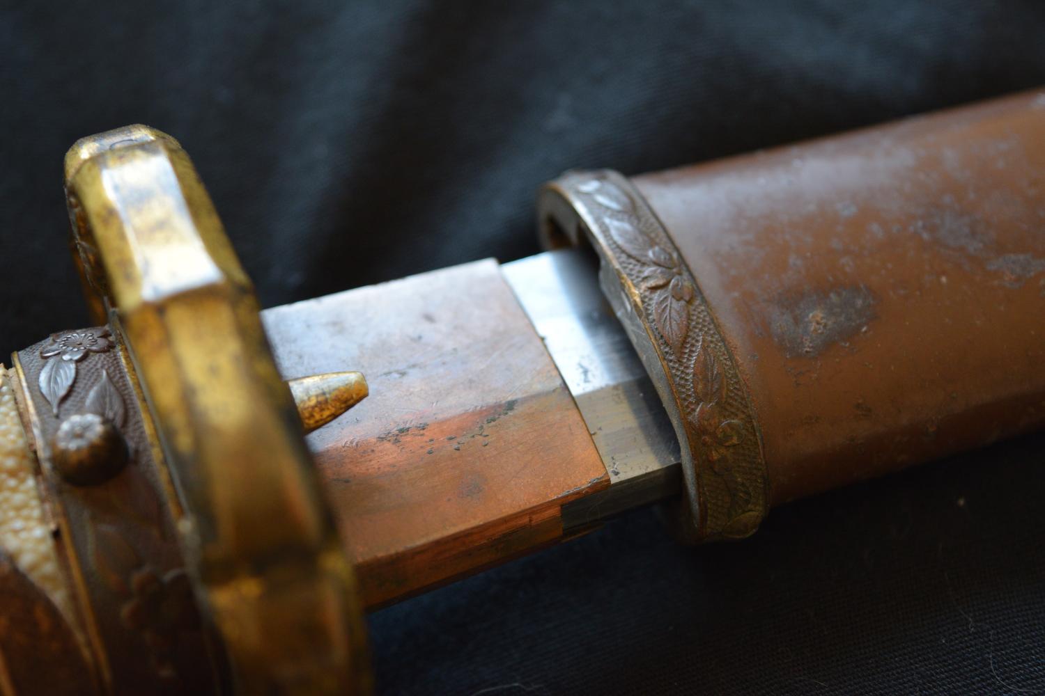 reeder Posted February 4, 2018 Author Report Posted February 4, 2018 Still looking. Prefer smooth type or ray skin scabbard. Using for display with tsunagi after the blade is polished so fitting the blade isn't a necessity. A picture showing the mismatch for the spring lock & scabbard is attached. Also, I'm still looking for a removable ashi for Type 94 mounts that match the fittings in the attached pictures.
