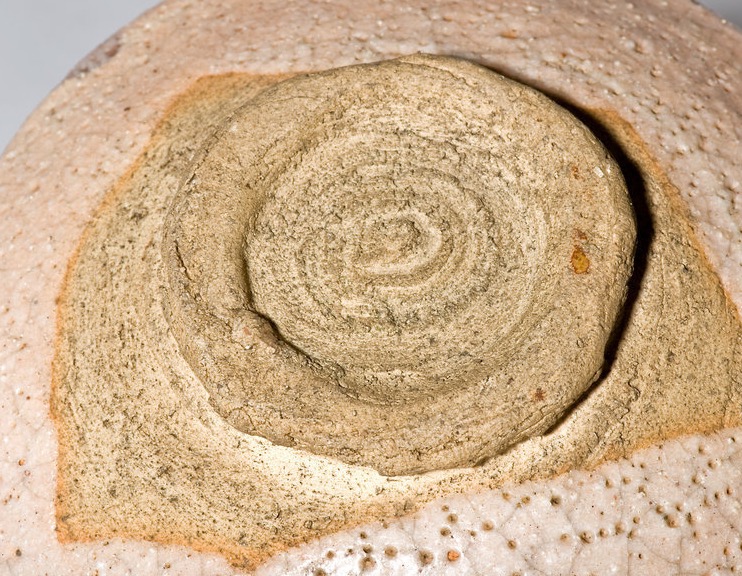 Fuuten Posted April 25, 2018 Report Posted April 25, 2018 In general, the photo's are a little too small to say something definite. These bowls seems to be meiji period, or very late Edo (although without personal contact/analysis it'll be a guess). Going further back in time you'll notice (especially in oribe and shino chawan), that the koudai - or foot becomes rougher (with the obvious exceptions). The clay less fine and the fine details much rougher. Here a koudai from a momoyama period dated chawan. Also to describe this kind of shape, often times the term "kutsu" chawan is used, deformed shape. 1 Quote