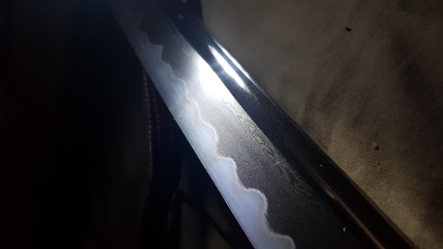 16k Posted April 15, 2020 Report Posted April 15, 2020 Hi Chris sorry for the delay. Pics are from my phone so sorry for lack of quality. Fittings are cheap but tsuka and saya are pretty well made and the wrap is good and tight. No glue to be seen too. I have two katana made by Simon, the other blade has no bohi and ive cut tatami, bamboo, pool noodles and a water melon too. Both are nice in hand and pretty well balanced. Definitely good value imho. Regards Greg it’s a nice sword Greg. I have one quite similar. I bought the blade bare and chose the koshirae with the different options they had. I chose an overall lobster theme with lobster Tsuba, Fuchi and kashira. The tsuka is black same with brown leather ito and the saya is black and segmented to recall the segmentation of a lobster's body. Nice Hada (tighter than yours) and good looking Hamon too. Somehow, even though it’s not a nihonto, I like it because it is MY conception from start to finish. 1 Quote